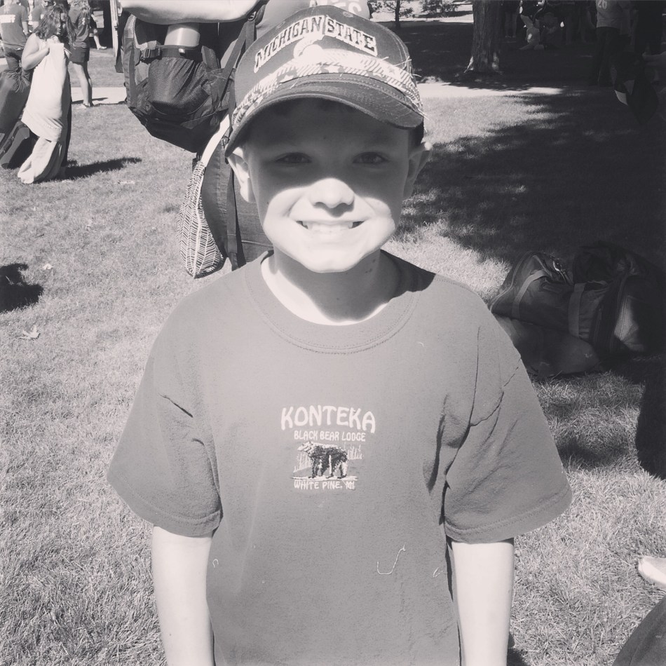 On Saturday – we picked him up and I was too amazed to take a picture – he seemed older, more confident and had made several new friends. Sure – his belongings were haphazardly packed and I learned he thought he lost his toothbrush Monday night, so we still had some evidence of his 9-ness, but the change in his actions was fantastic!
